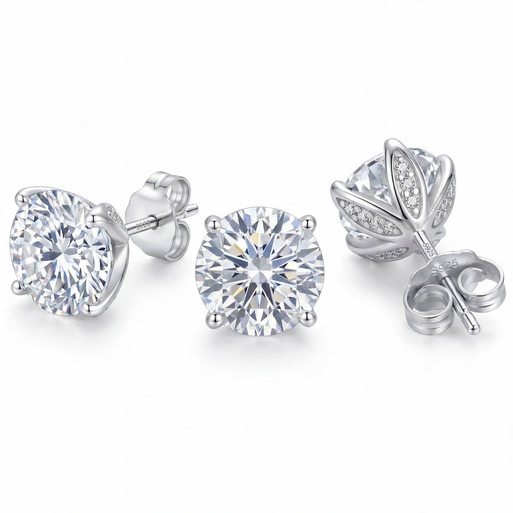 • 1ct Round-Cut Moissanite (Each Earring) – Exceptional brilliance with a premium, diamond-like sparkle